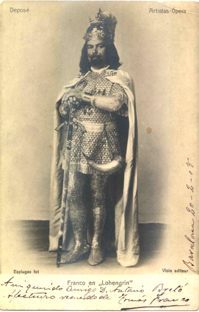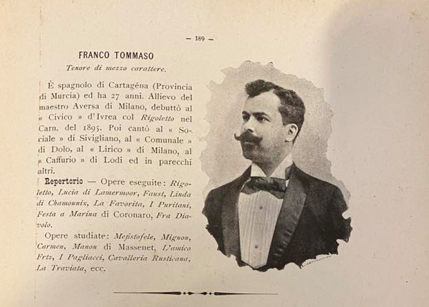 Tomás Franco studied voice in Milano with maestro Aversa and made his debut in the Carnival season 1895 at the Teatro Civico
